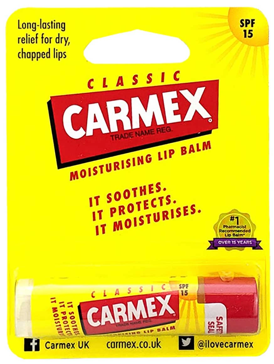 Carmex Moisturising Lip Balm by Carma. Keeps lips soft, alleviates the roughness of dry lips. Protects from wind and sun. Replaces moisture and protects from sunburn. Helps heal chapped lips, contains germ-killing menthol and phenol, speeding the healing process.