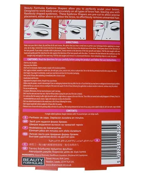 Beauty Formula Eyebrow Shapers allow you to perfectly sculpt your brows. Designed to work easily and accurately on all types of brow hair, leaving you with flawlessly shaped eyebrows. These Eyebrow Shapers are pre-cut to allow precise placement, either above or below the brow, to effortlessly remove unwanted hair.