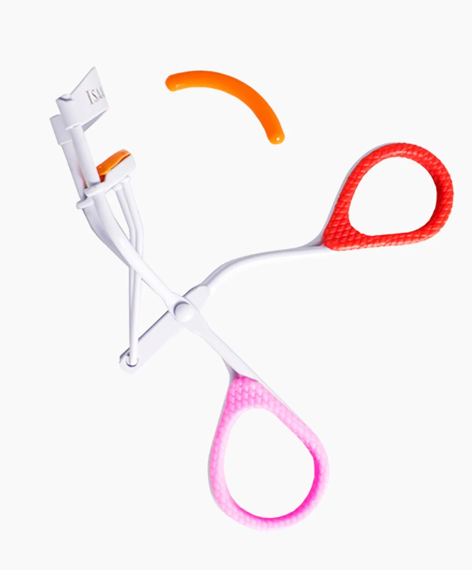 Get ultra feminine lashes minus the painful pinching. The Revlon Isaac Mizrahi Extra Curl Lash Curler is a limited edition curler designed by fashion designer Isaac Mizrahi. This colorful curler is the perfect size to comfortably reach every lash. The rounded pad cushions the grip so that there’s no crimp or pinch.